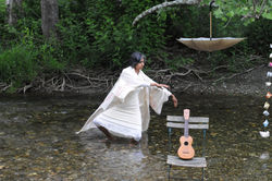 Endure explores the fundamental impermanence of life, and the enduring strength of fragile vessels - human hearts and paper boats. Inspired by water, images from distant lands, and Japanese Butoh, within this work Prema offers an adaptation of a traditional Kudiyattam storyelling vignette wherein a single actor plays both a man and a woman. Kudiyattam is a 10,000 year-old Sanskrit drama form from Kerala, India. Also, in Asia , there is a custom of making ritual offerings for departed ones along a river; sometimes this is done in a paper boat. ​